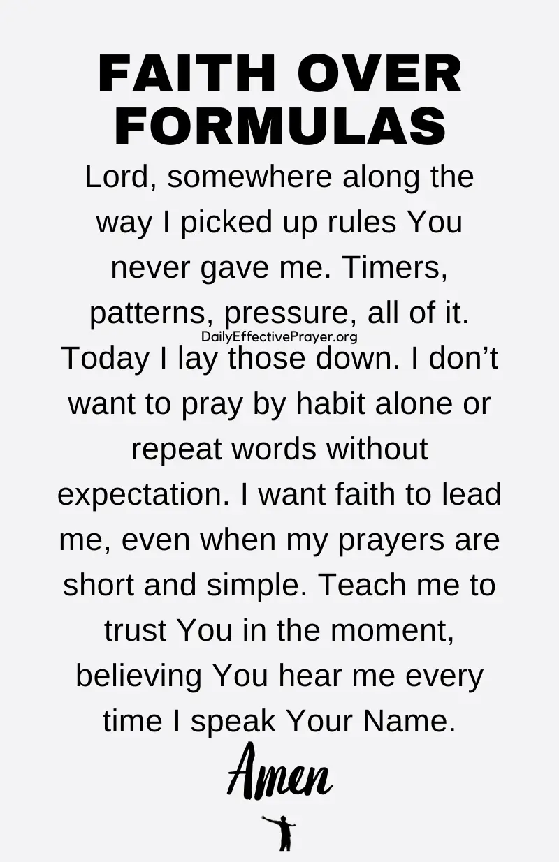Because faith is what actually reaches God and pleases Him, not volume or duration (Hebrews 11:6). A short prayer spoken with expectation can carry more weight than pages of words spoken out of fear or routine. We’ve all had moments where we prayed long and left unchanged, and other moments where one honest sentence shifted something deep inside us.