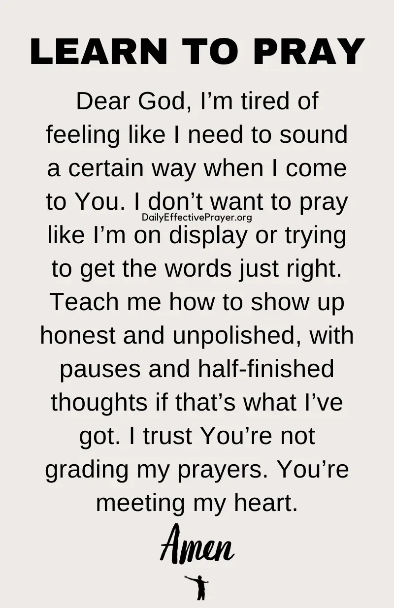 "Dear God, teach me to pray from my heart, not from obligation. Help me listen more rather than perform. I choose to trust that You’re near even in quiet moments. I want my prayers to be real, not rushed, forced, or prolonged just so I sound spiritual. Lead me today by Your Holy Spirit. Amen."