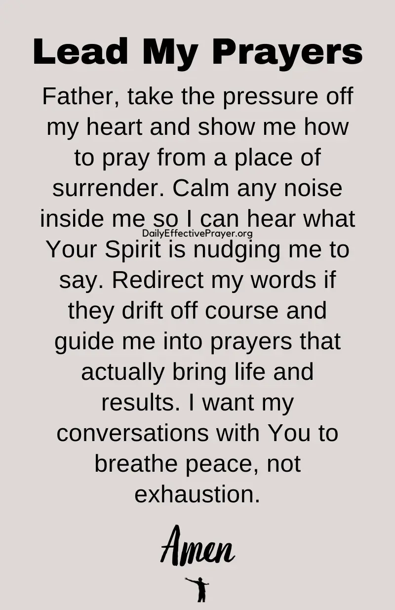 "Dear God, teach me to lean into Your heart instead of getting lost in my own words. Help me sense the difference between praying from my mind and praying with Your Spirit guiding the way. Show me that prayer feels fuller and richer when I follow Your lead, not my own ideas. Draw me into a relationship where hearing You becomes natural and satisfying. Amen."